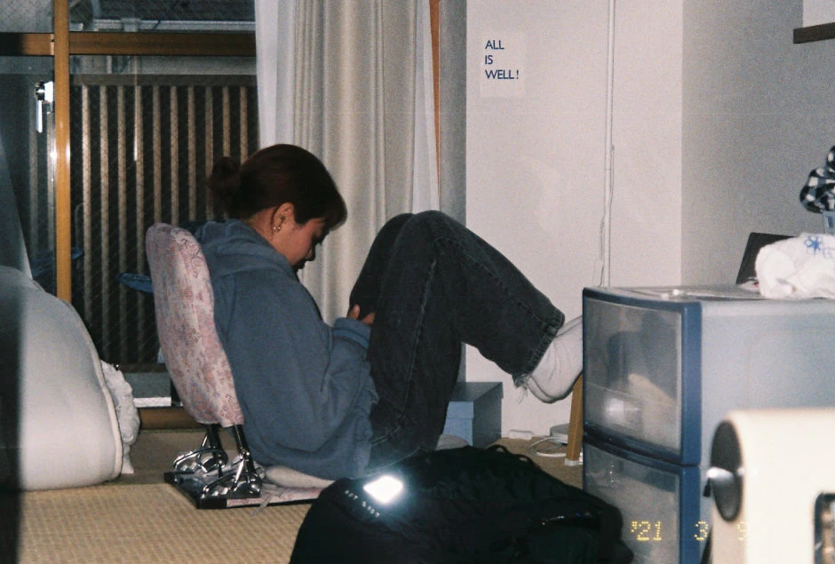 撮影は数名のスタッフ、機材はiPhoneのみ(アフレコのため録音機材もなし)で行われました。このミニマムな体制において、映画は私たちが普段小さなカメラで行っているように世界と接触しています。出演者が実際に暮らしていた家が主な舞台となり、ある美大生の実態、コロナ禍の生活環境、早朝から深夜にかけての郊外の町の様子が、まさにその状況を生きる者の目線、時間軸で撮られ、ホームビデオのような情緒を宿しました。現実と地続きな映画設計、被写体の親密さはジョナス・メカスやホン・サンスの映画を彷彿とさせます。